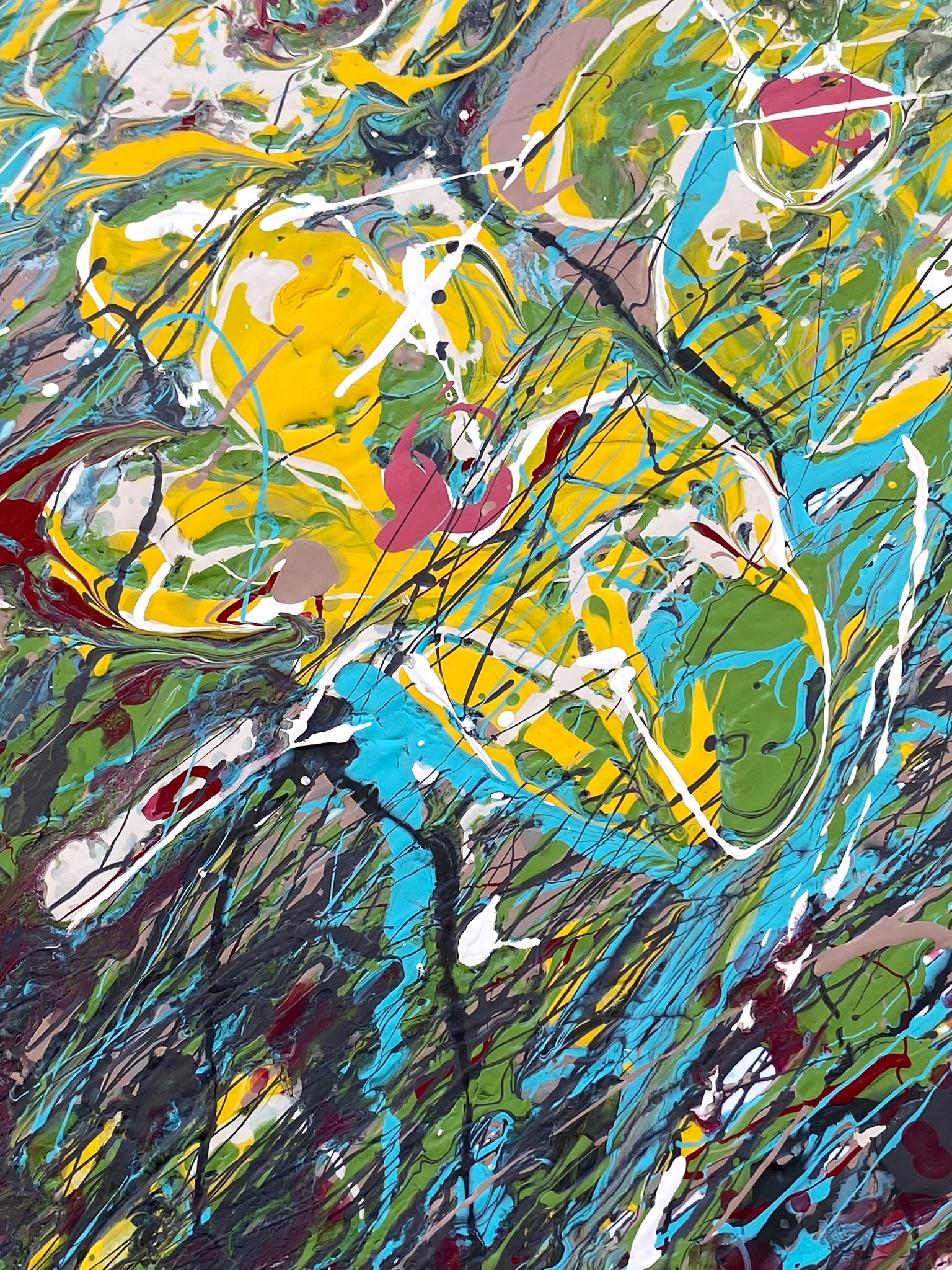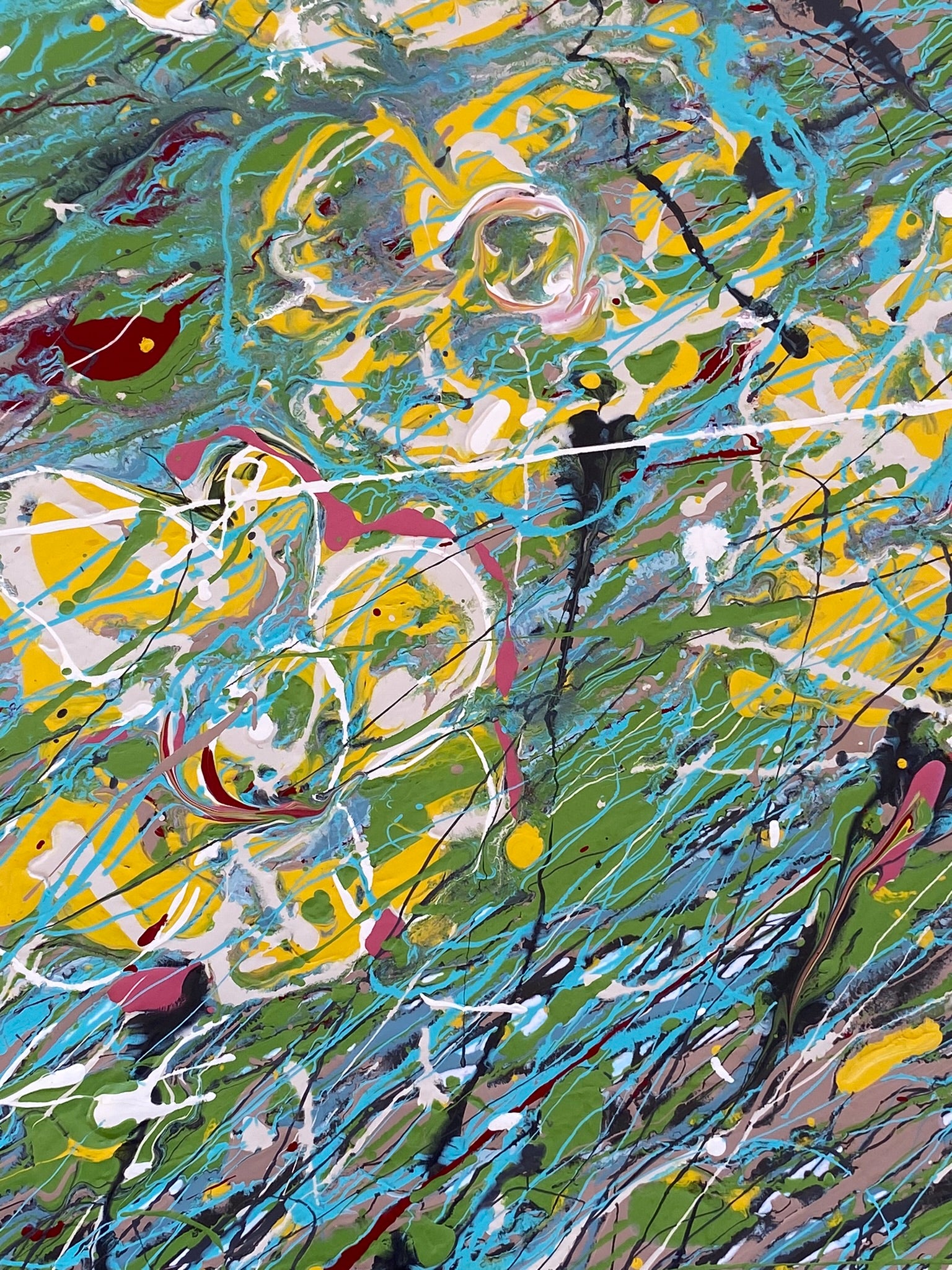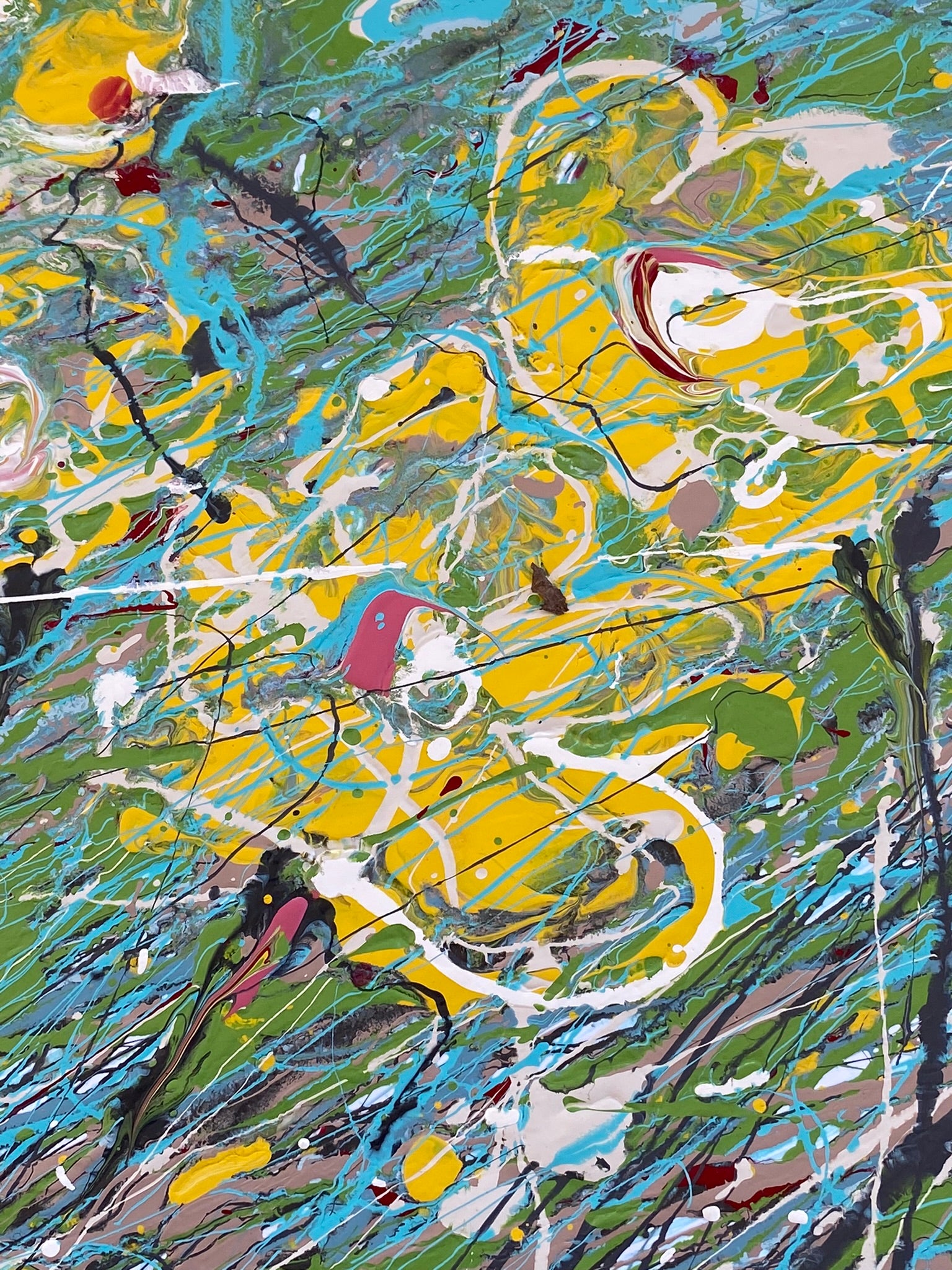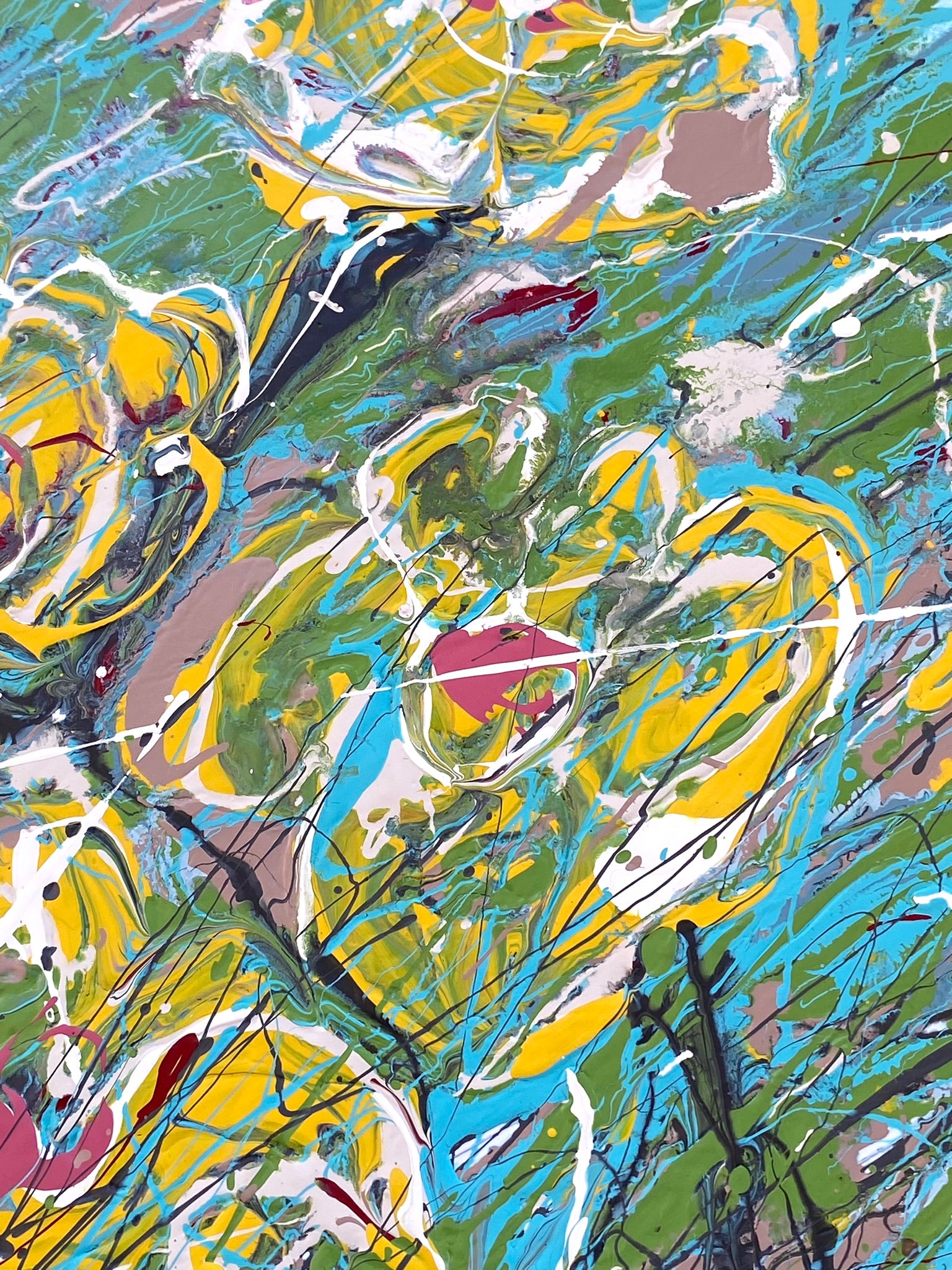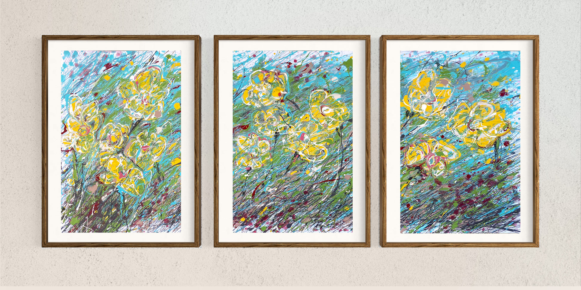 Flowers “yellow flowers resisting the wind” this composition consists of three pieces made on the photo paper with acrylic paint use.